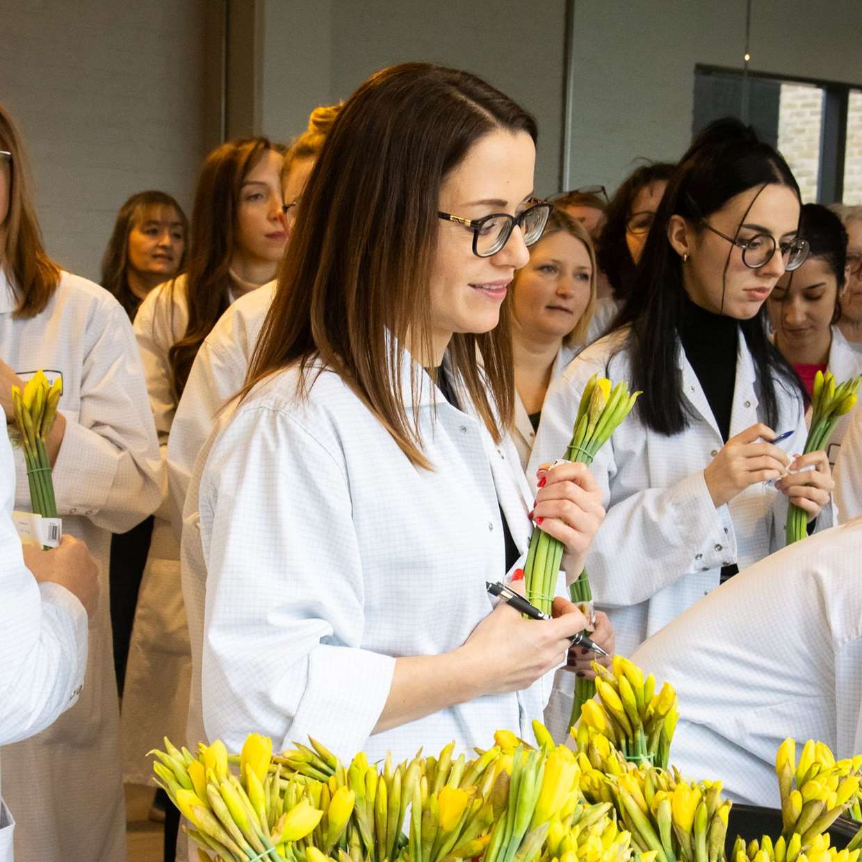 Der Standort Bedford im Vereinigten Königreich überraschte seine weiblichen Angestellten mit wunderschönen gelben Tulpen.