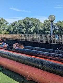 Als dem Team mitgeteilt wurde, dass es nass werden würde, war das eine ziemliche Überraschung, aber alle nahmen es mit Humor und es war sehr lustig zu sehen, wie alle beim verzweifelten Versuch, das Gleichgewicht wieder zu finden, hinfielen. Man kann sagen, dass der Wettkampfcharakter des Tages voll zum Tragen kam. Es gab einige lustige Momente. Einmal wurde ein Teammitglied dabei beobachtet, wie es den Eimer mit seinem Glas füllte!