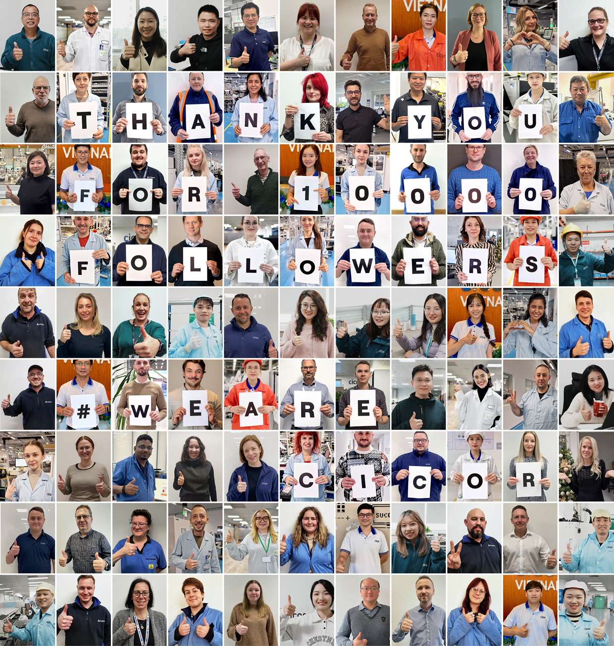 Im Dezember haben wir die Marke von 10'000 Followern auf LinkedIn geknackt und dies mit einem Beitrag gefeiert, an dem sich 99 Kolleginnen und Kollegen aus aller Welt beteiligten. Gemeinsam haben wir eine Dankesbotschaft für unsere Follower gestaltet. Können Sie einige bekannte Gesichter entdecken? Vielen Dank an alle, die bei der Organisation geholfen oder ein Foto beigesteuert haben.