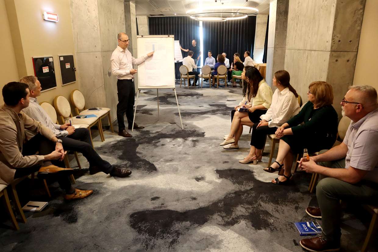 Wednesday, we took a shift from the financial approach of things, while trainers guided us into learning the Art of Shift from John Maxwell, as well as raising our awareness to adaptive communication and the different communication styles people might have. It was an eye-opening experience which helped us recognize not only our profile, but also understand what our colleagues or business partners could better respond to. At the end of the day, we discussed how leading with empathy is, while taking Simon Sinek’s perspective on a leader’s role.