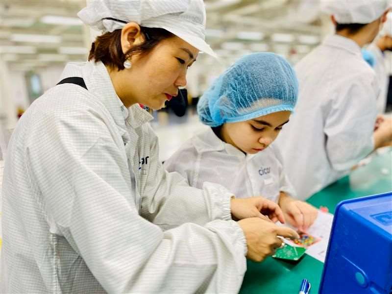 Open Door Day event at Cicor Vietnam Fosters Engagement and Learning Today, Cicor Vietnam hosted its second Open Door Day event, welcoming employees' children and 30 students from the German International School in Ho Chi Minh City. The event exemplified a remarkable blend of students from international and local schools, fostering an environment of shared stories and collaborative play. Throughout the event, students had the chance to interact with staff members and explore future career paths. They asked numerous insightful questions about the company's machinery, products, organizational structure, and compensation packages. A highlight of the day was the hands-on experience with soldering irons, where students created products under the guidance of instructors. The students' quick mastery and application of soldering techniques left a lasting impression on the instructors.