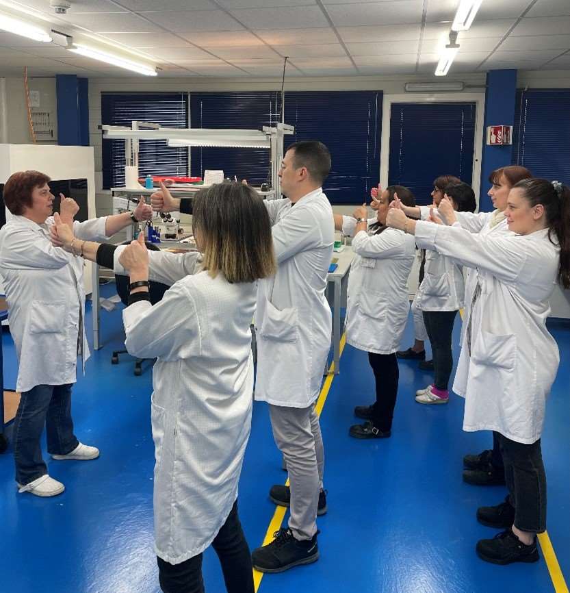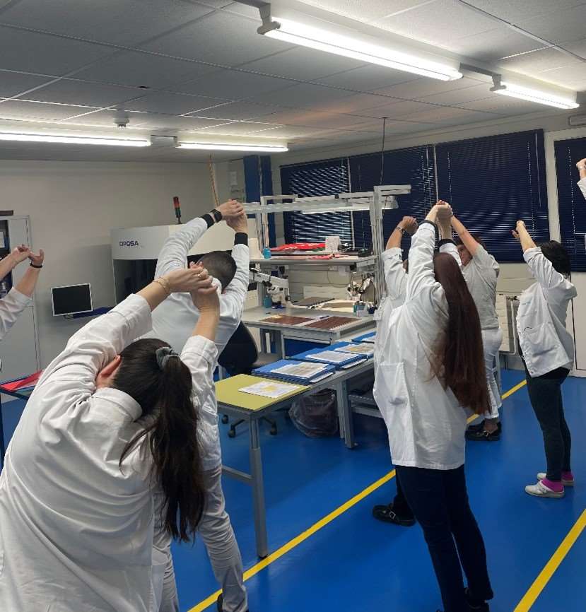 At Cicorel we were planning to bring more movement into our visual control department and Nicole’s arrival a few months ago gave us the opportunity to benefit from experience she made at her former employers. She had taken part in gentle gym groups at work, and most importantly she had been trained to lead these groups. With great enthusiasm, she suggested to organize 5–10-minute sessions every afternoon. The program includes eye yoga, neck and shoulder relaxation, leg activation, etc.