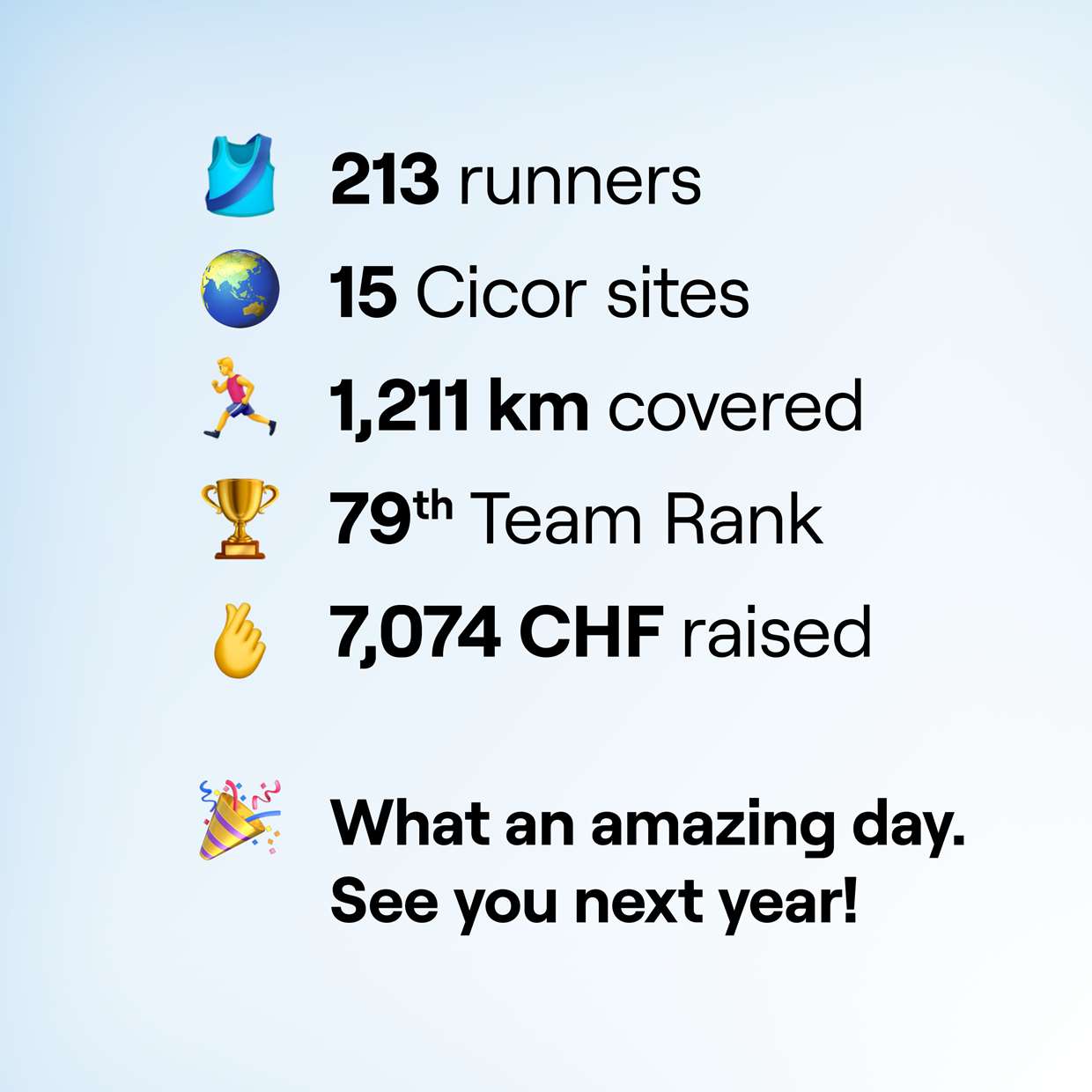 213 Cicor runners took part in this year’s charity event, doubling last year’s donation and distance.